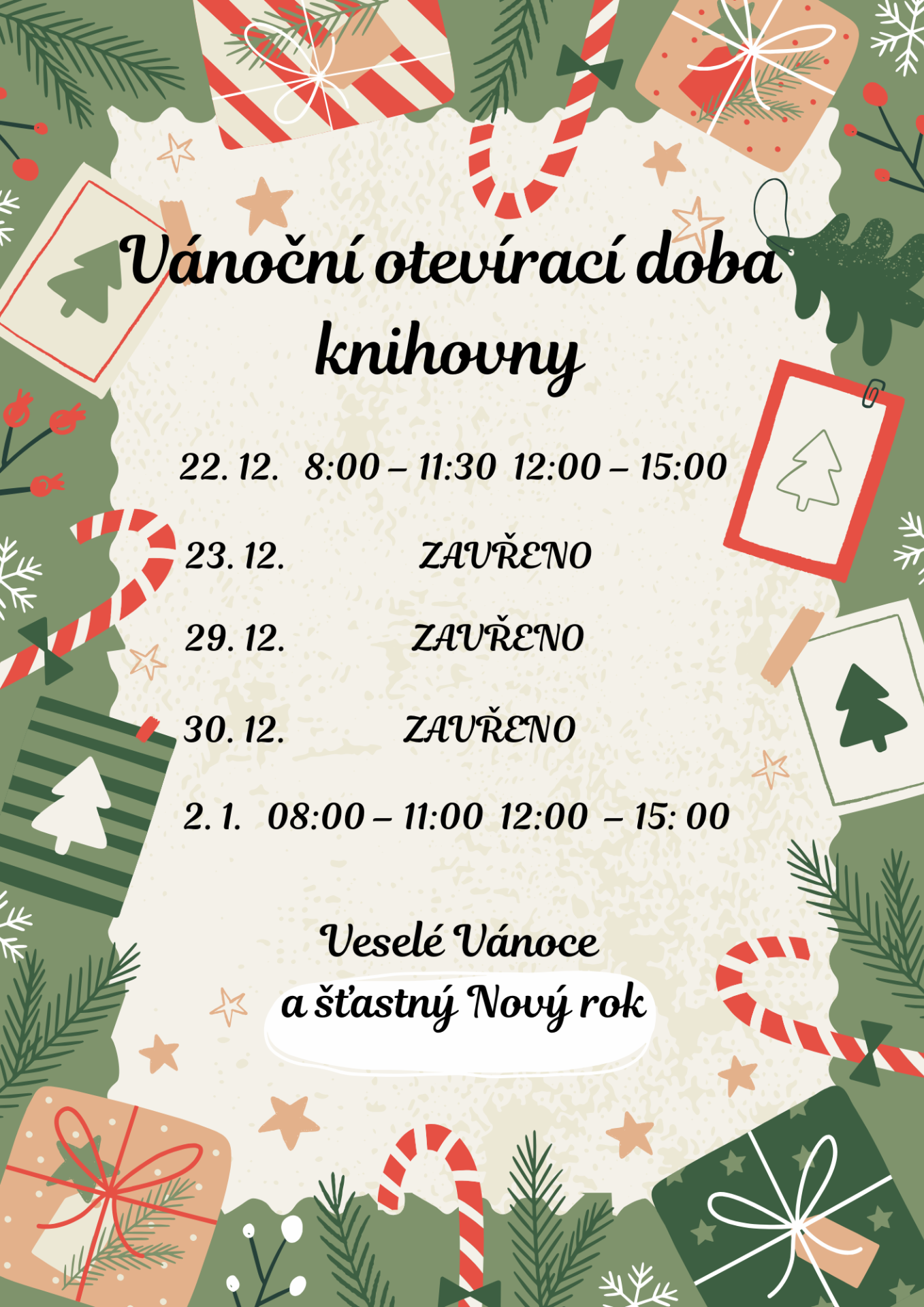 Otevírací doba o Vánocích